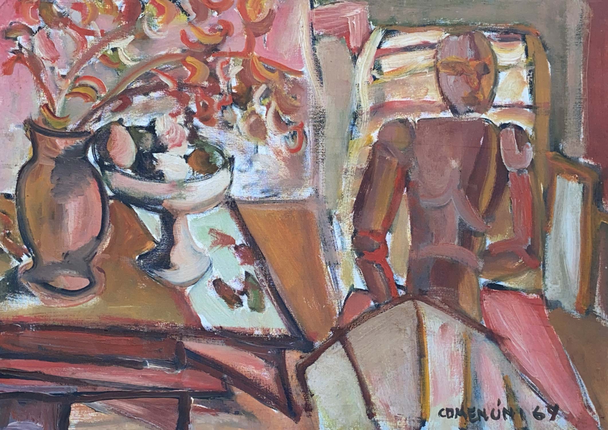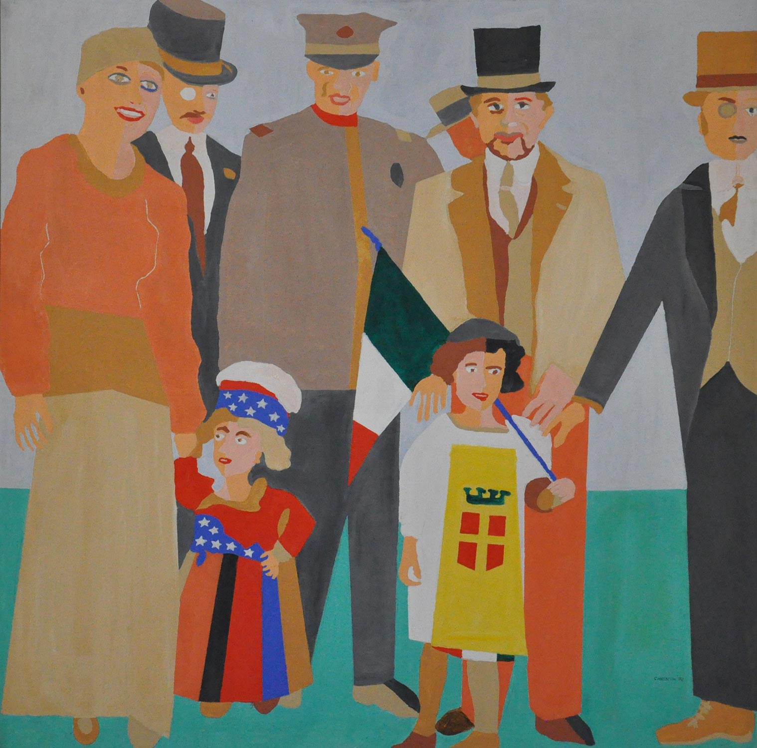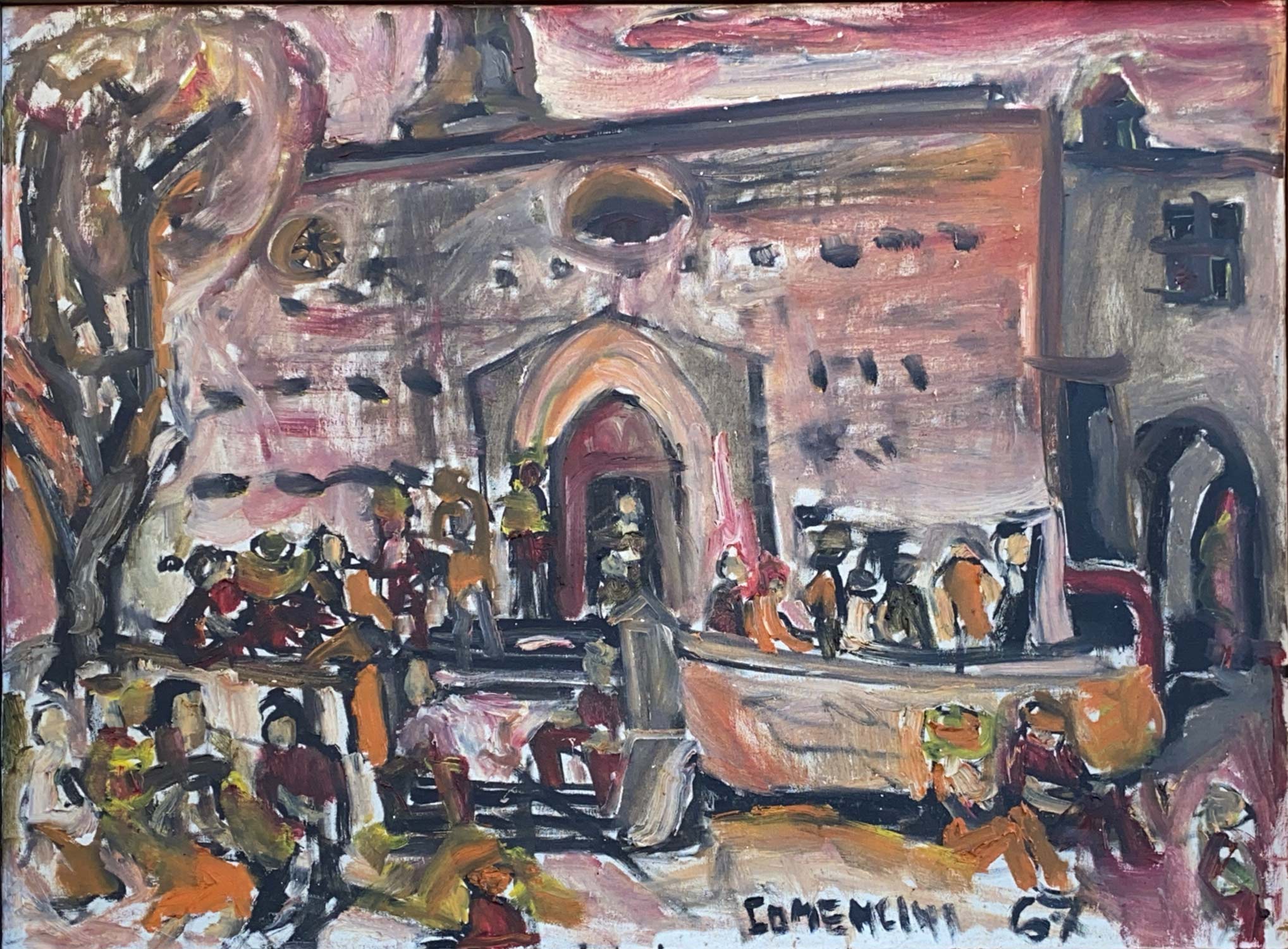Infatti, la casa della madre, la stazione ferroviaria, le tavolate all’osteria le ritroviamo nei suoi quadri così come sono proprio i personaggi che qui incontra, gendarmi e doganieri con le loro divise, contadini o viandanti e che vede al bar intenti a sorbire, senza fretta, in allegria, qualche buon bicchiere di vino, che lasciano una impronta profonda nella memoria di Genio e di cui troviamo traccia nella sua pittura.