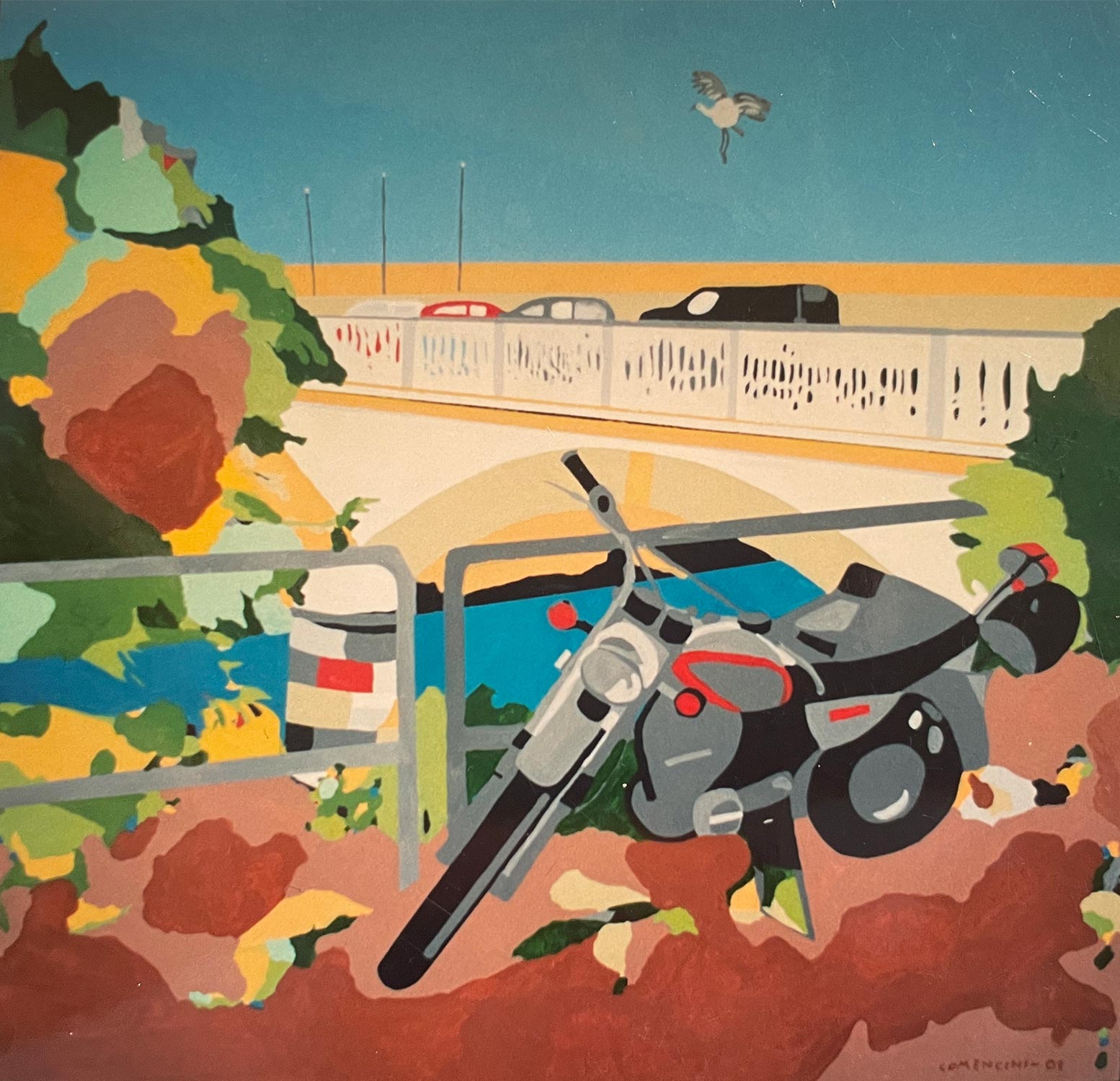 Cicogna e moto al ponte sulla Dora di Corso Principe Oddone a Torino